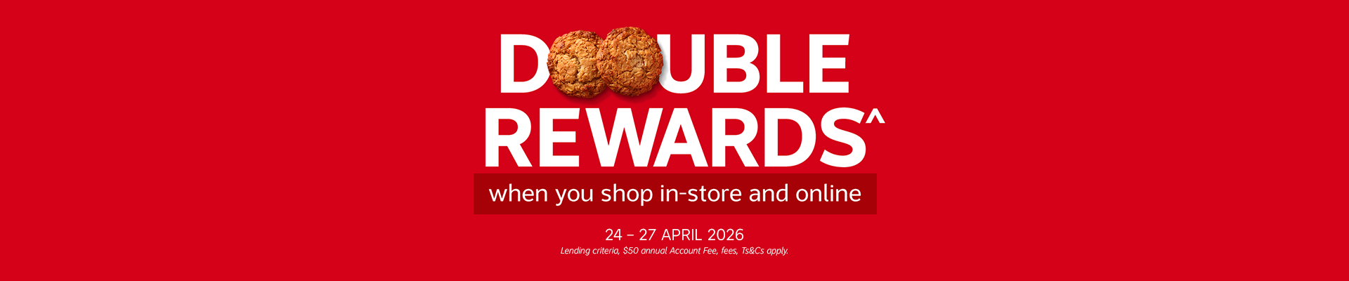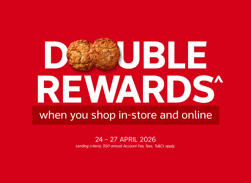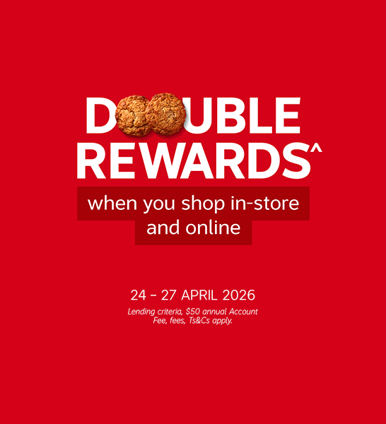 Get a little more out of your long weekend shop. From Friday 24 – Monday 27 April 2026, you’ll earn Double Rewards^ on all purchases, whether you’re shopping online or in-store. There’s no minimum spend.